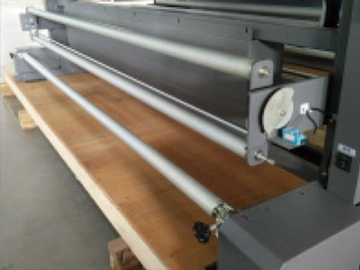 2. Esta impresora ecosolvente está configurada con un sistema automático de alimentación y recolección de medios.